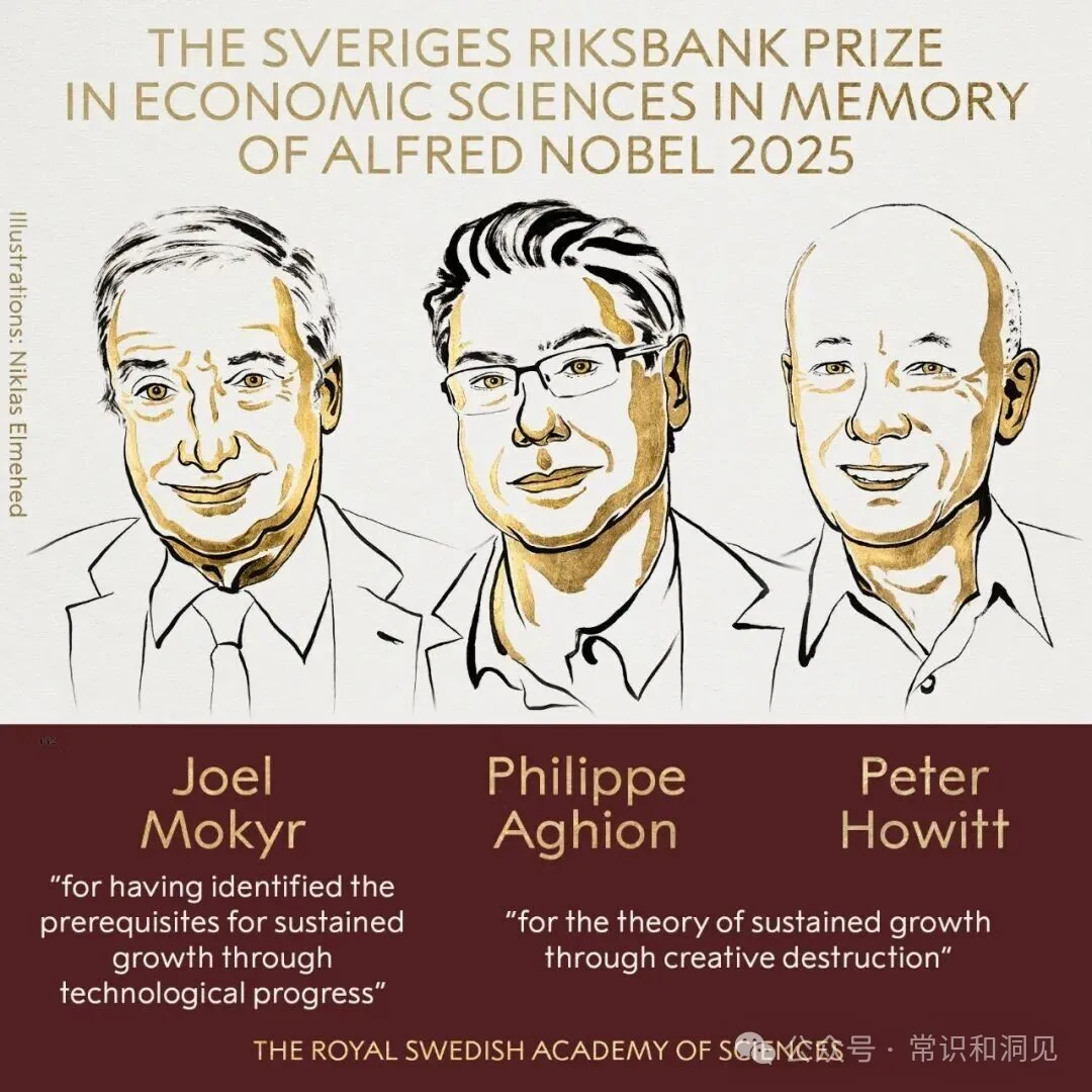 2025年的诺贝尔经济学奖,一半奖金授予了经济史学家乔尔•莫基尔(Joel Mokyr),表彰他“揭示了通过技术进步实现持续增长的先决条件”;另一半奖金则授予菲利普•阿吉翁(Philippe Aghion)和彼得•豪伊特(Peter Howitt),表彰他们“通过创造性破坏实现持续增长的理论”。
